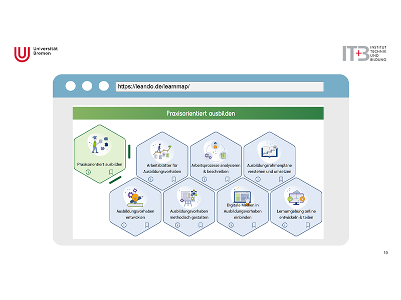 - sowie die Lernpfade selbst, die über die Plattform leando.de des Bundesinstituts für Berufsbildung (BIBB) verfügbar sind.